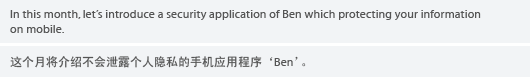 À̹ø´Þ¿¡ ¼Ò°³ÇϰíÀÚ ÇÏ´Â »çÀÌÆ®´Â ´ç½ÅÀÇ ½º¸¶Æ®ÆùÀ» ÁöÄÑÁÖ´Â ¸ð¹ÙÀÏ º¸¾È ¾îÇø®ÄÉÀÌ¼Ç »çÀÌÆ®·Î, ¸ð¹ÙÀÏ º¸¾È ¾îÇø®ÄÉÀÌ¼Ç ¡®Ben¡¯ÀÇ ¼Ò°³¿Í ÇÔ²² ¼Ò¼È¹Ìµð¾îÀÇÀÇ ¿¬µ¿À¸·Î Ä¿¹Â´ÏÄÉÀ̼ÇÀ» Áñ±â´Â °Í¿¡ ´ëÇØ À̾߱â ÇϰíÀÚ ÇÑ´Ù.