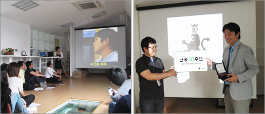 ƯÈ÷ À̳¯ Çà»ç¿¡¼´Â µðÁöÅдÙÀÓ ±èÀ¯Ã¶ °úÀåÀÇ »çȸ·Î °øÃ¤4±â ½ÅÀÔ»ç¿øµéÀÇ ÃàÇϹ«´ë, Ã߾←Çà°ÔÀÓ, Çà¿î±Ç Ãß÷ µîÀ» ÁøÇàÇÏ¿´À¸¸ç, Áö³ 14³â°£ÀÇ »çÁøµéÀ» ¸ð¾Æ ½½¶óÀ̵å·Î º¸¿©ÁÖ¾î Âü¼®ÇÑ ¸ðµç »ç¶÷µéÀÌ Ãß¾ïÀ» ¶°¿Ã¸®°Ô Çß´Ù.