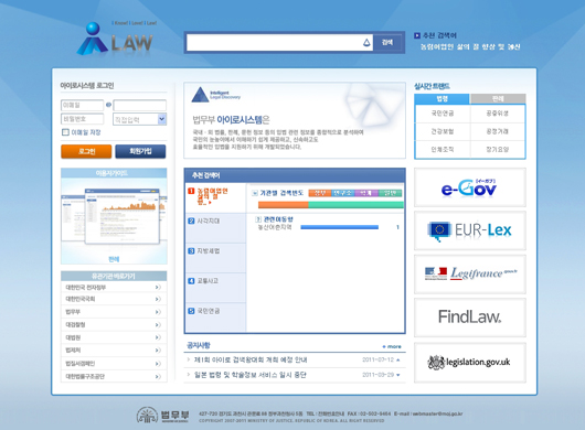 µðÁöÅдÙÀÓÀº ¹ý¹«ºÎÀÇ Áö´ÉÇü ÀÔ¹ýÁö¿øÁö¿ø½Ã½ºÅÛÀ» °³Æí ¹× ´ë±¹¹Î ¼ºñ½º¸¦ ¿ÀÇÂÇÏ¿´´Ù. ¡®¾ÆÀÌ·Î¿ì ½Ã½ºÅÛ¡¯Àº ¹ýÁ¦Á¤º¸°Ë»öÀÇ È¿À²¼ºÀ» Á¦°íÇÏ°í ±¹³»¿Ü ¹ýÁ¦Á¤º¸¸¦ ÇÑ´«¿¡ ÆÄ¾Ç ÇÒ ¼ö ÀÖµµ·Ï Çϰí, ÃÖÀûÀÇ ¹ýÁ¦ Á¤º¸ ³»ºñ°ÔÀÌ¼Ç Á¦°øÀ» ¸ñÇ¥·Î Á¦ÀÛ µÇ¾ú´Ù.