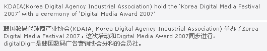 | д б а Ȱϰ ִ ()ѱпûȸ ( KDAIA Korea Digital Agency Industrial Association) 11 30 б Ѱ ùΰ RiverCity Korea Digital Media Festival 2007' Ѵ.