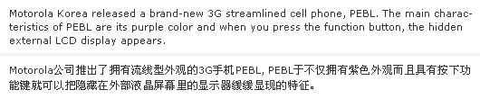 ¸ðÅä·Î¶ó´Â À¯¼±Çü ¿Ü°üÀÇ 3GÆù 'Æäºí PEBL 'À» Ãâ½ÃÇß´Ù.