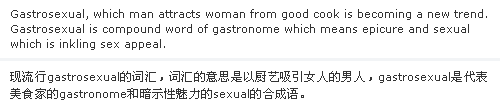 ¿ä¸® ¼Ø¾¾·Î ¿©¼ºÀ» ¸ÅȤ½ÃŰ´Â ³²ÀÚ, Àϸí '°³½ºÆ®·Î¼½½´¾ó gastrosexual'ÀÌ »õ·Î¿î À¯ÇàÀ¸·Î ¶°¿À¸£°í ÀÖ´Ù.