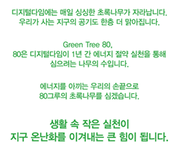 Ä·ÆäÀÎ ¸íÀÎ ¡®Green Tree 80¡¯ÀÇ ¡®80¡¯Àº ¿ì¸®°¡ ÀÛÀº ½ÇõÀ» ÅëÇØ ÀÌ»êÈź¼Ò·®À» ÁÙÀ̰í, À̸¦ ÅëÇØ ½ÉÀ» ¼ö ÀÖ´Â ³ª¹«ÀÇ ¼ö¸¦ ÀǹÌÇϸç, À̹ø Ä·ÆäÀÎÀÇ ¸ñÇ¥À̱⵵ ÇÏ´Ù.