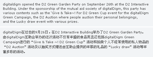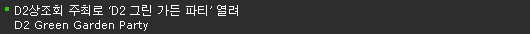 ÆÄƼ ½ÃÀÛ°ú ÇÔ²² ÁøÇà µÈ ¡®Give & Take ~! D2 Green Cup¡¯Àº µðÁöÅдÙÀÓ ±×¸°Ä·ÆäÀÎ ¡¯Green Tree 80¡¯ÀÇ ÀÏȯÀ¸·Î ÁøÇàÇÑ À̺¥Æ®·Î, ¸ðµÎ°¡ ¸Ó±×ÄÅÀ» Çϳª¾¿ °¡Á®¿Í ´Ù¸¥ »ç¶÷¿¡°Ô ¸±·¹ÀÌ·Î ¼±¹°ÇÏ´Â ¹æ½ÄÀ¸·Î ÁøÇàµÇ¾ú´Ù.(µðÁöÅдÙÀÓÀº ±×¸° Ä·ÆäÀÎÀÌ ½ÃÀ۵Ǵ ¿À´Â 29ÀϺÎÅÍ Á¾ÀÌÄÅ ´ë½Å °³ÀÎ ÄÅÀ» »ç¿ëÇÏ°Ô µÈ´Ù.)