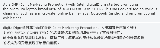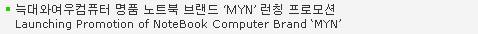 µðÁöÅдÙÀÓÀº ÀÎÅÚ Intel °úÀÇ JMP Joint Marketing Promotion ·Î ¢ß´Á´ë¿Í¿©¿ìÄÄÇ»ÅÍÀÇ ¸íǰ³ëÆ®ºÏ ºê·£µå MYN(¸¶À̾Ø)ÀÇ ·±Äª ÇÁ·Î¸ð¼ÇÀ» ÁøÇàÇß´Ù. ÀÎÅÚÀÌ ÃßõÇÑ µðÀÚÀÎ ±â¹ÝÀ¸·Î Ãâ½ÃµÈ MYN -A1 series ´Â ¢ß´Á´ë¿Í¿©¿ìÄÄÇ»ÅͰ¡ ¸íǰ ºê·£µå·Î °Åµì³ª±â À§ÇØ Ãâ½ÃÇÑ Á¦Ç°À¸·Î, °í±¤ÅÃÀÇ ºí·¢ ÇÏÀ̱׷νà ¹Ùµð¿¡ °·ÄÇÑ ·¹µå·Î Æ÷ÀÎÆ®¸¦ ÁÜÀ¸·Î½á ½ºÅ¸Àϸ®½¬ÇÑ ´À³¦À» Àü´ÞÇϸç, SRR(»êŸ·Î»ç¸®ÇÁ·¹½¬) ±â¹ÝÀÇ ÀÎÅÚ ¼¾Æ®¸®³ë T9300 ÀÌ Å¾ÀçµÇ¾î ¿ì¼öÇÑ ¼º´ÉÀ» ÀÚ¶ûÇÑ´Ù.