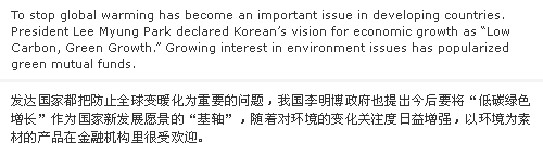 ¼±Áø±¹µéÀÌ Áö±¸ ¿Â³È ¹æÁö¸¦ Áß¿äÇÑ À̽´·Î ¿©±â°í, ±¹³»¿¡¼µµ À̸í¹Ú Á¤ºÎ°¡ ¡®Àúź¼Ò³ì»ý¼ºÀ塯À» ±¹°¡ ºñÀüÀ¸·Î ¼±Æ÷ÇÏ´Â µî ±×¸°, ȯ°æ¿¡ ´ëÇÑ °ü½ÉÀÌ ³¯·Î Áõ´ëµÇ°í ÀÖ´Â °¡¿îµ¥, ±ÝÀ¶±Ç¿¡¼µµ ȯ°æÀ» ¼ÒÀç·Î ÇÑ »óǰÀÌ Àα⸦ ²ø°í ÀÖ´Ù.