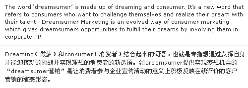 µå¸²½´¸Ó´Â dreaming(²Þ²Ù´Â)°ú consumer(¼ÒºñÀÚ)°¡ °áÇÕÇØ ¸¸µé¾îÁø ¸»·Î Àç´ÉÀ» »ì·Á »õ·Î¿î µµÀü°ú ²ÞÀ» ½ÇÇöÇÏ°í ½Í¾îÇÏ´Â ¼ÒºñÀÚµéÀ» ÀÏÄ´ ¸»ÀÌ´Ù. µå¸²½´¸Ó¿¡°Ô ²ÞÀ» ½ÇÇöÇÒ ¼ö ÀÖ´Â ±âȸ¸¦ Á¦°øÇÏ´Â 'µå¸²½´¸Ó ¸¶ÄÉÆÃ'Àº ¼ÒºñÀÚµéÀ» ±â¾÷ È«º¸ Ȱµ¿¿¡ Âü¿©½ÃŲ´Ù´Â Àǹ̿¡¼ ¿Â¶óÀÎ Æò°¡¸¦ Àû±ØÀûÀ¸·Î ¹Ý¿µÇÏ´Â ¸®ºä½´¸Ó reviewsumer (review+consumer), |